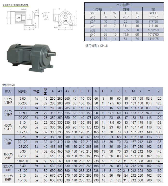 CH..S(CH..SB) 臥式附三相铝壳(剎车)马达减速机