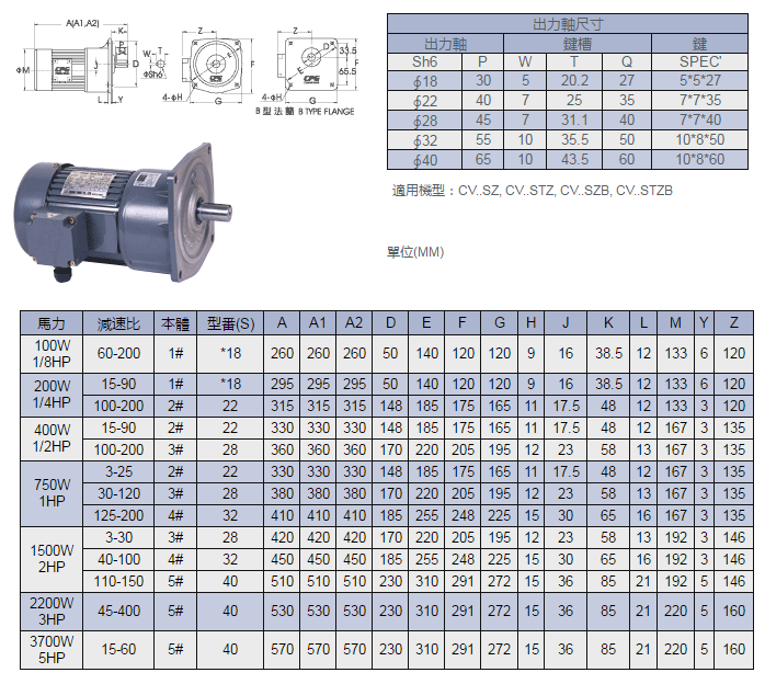 CV..SZ(CV..SZB) 立式附三相缩框铝壳(剎车)马达减速机