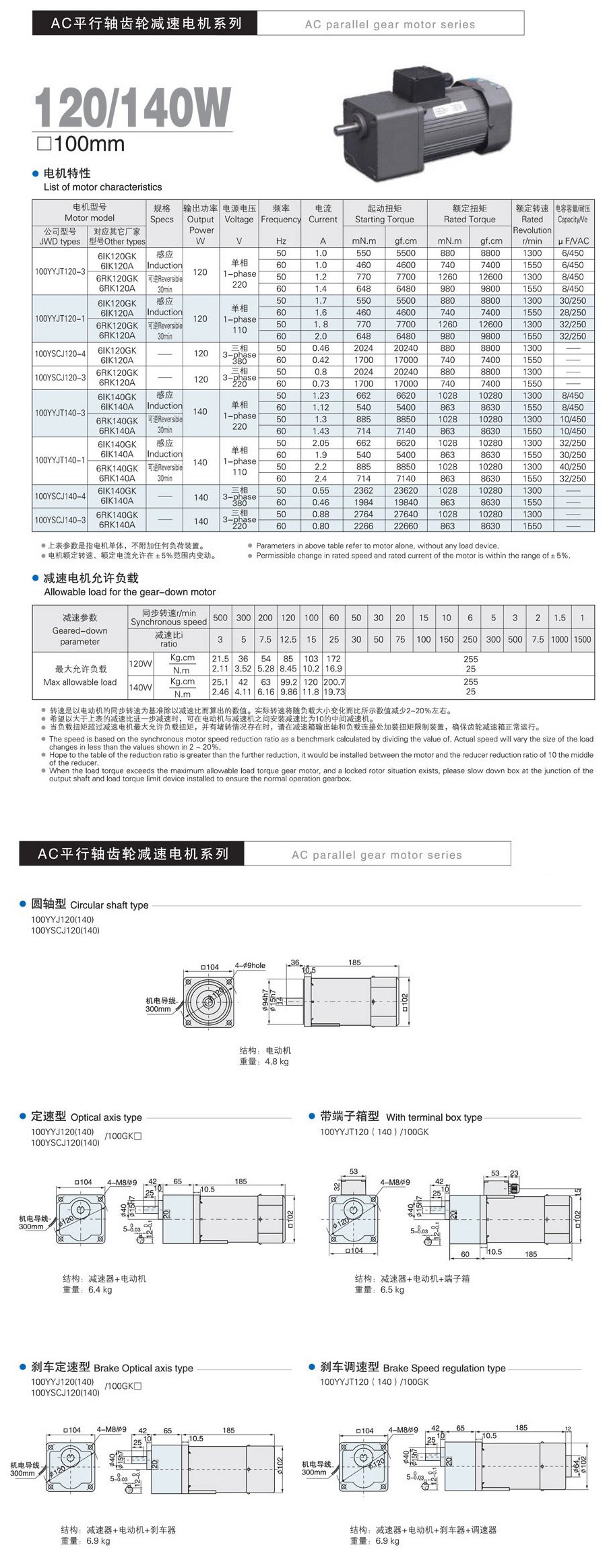 标淮单相减速机型